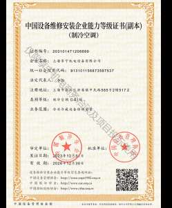 制冷使用的制冷设备均通过了ISO9001质量体系,制冷空调安装许可证等多项认证,连续多年被评为上海市“诚信会员企业”,同时也是中国制冷协会团体会员。公司发展至今已与国内外知名制冷设备生产厂家建立起了长期的友好合作关系,拥有艾默生谷轮压缩机、日立、比泽尔压缩机、美优乐压缩机、雪鹰压缩机、上海精创控制系统、丹尼斯膨胀阀,宏泰保温管等国外内最优秀企业的产品。离不开他们的支持。